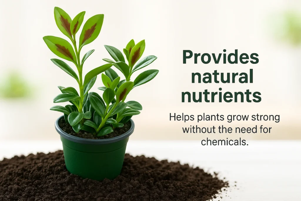 A safe and eco-friendly fertilizer made from red wigglers, ideal for vegetables, fruits, flowers, and indoor plants – gentle on roots and free from chemicals.